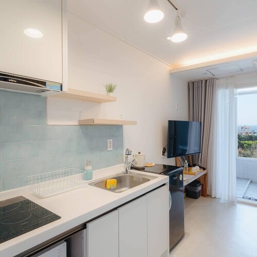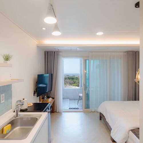 チョチョンに位置するこのアパートスタイルホテルは、북촌 너븐숭이 4.3기념관および咸徳海水浴場から 2.3 km の場所にあります。トルハルバン公園および済州抗日記念館も 5 km 圏内です。 スナックバー / デリ、コーヒーショップ / カフェ、および共用エリアでのコーヒー / ティーサービスがある禁煙のアパートスタイルホテルです。共用エリアでの WiFi (無料)および セルフパーキング (無料)もご利用いただけます。その他に、敷地内には庭園、バーベキューグリル、およびピクニックエリアがあります。 各客室では、床暖房のほかに、WiFi (無料)、簡易キッチンもご利用いただけます。エンターテインメント設備として、ケーブル放送付きの薄型テレビがあるほか、便利なダイニング スペース、冷蔵庫もご利用いただけます。