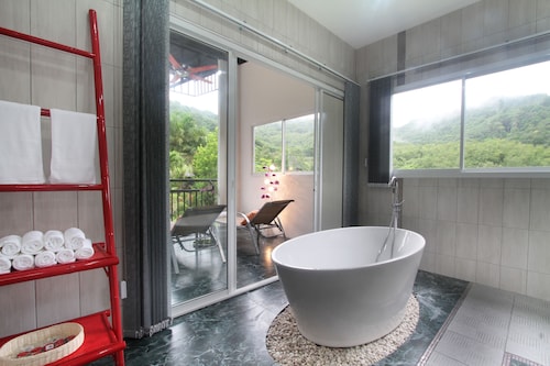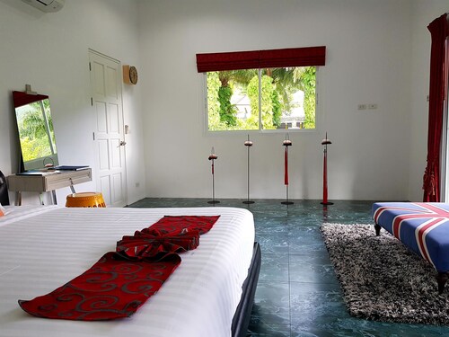 チャロンに位置する、ファミリー向けのこのヴィラは、州立公園内にあり、チャロン寺院およびビッグ ブッダから 5 km 圏内です。カロン ビーチおよびプロンテップ岬も 20 km 圏内です。 屋外プールのほか、このヴィラにはランドリー設備およびゲームコーナーがあります。共用エリアでの WiFi (無料)および セルフパーキング (無料)もご利用いただけます。その他に、敷地内にはツアー / チケット案内、庭園、およびバーベキューグリルがあります。 ヴィラには、プライベートプール、深めの浴槽のほかに、10 室のバスルームとダイニング スペースも備わっています。冷蔵庫と電子レンジ付きのキッチンのほか、WiFi (無料)、パティオもご利用いただけます。週に 1 回客室清掃が行われます。