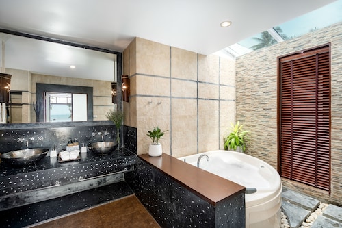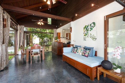 サムイ島にあるファミリー向けのこのヴィラは、ビーチの近くに位置し、ワット プラーイ レームおよびプライラエムビーチから徒歩 10 分圏内です。チャウエン ビーチおよびチョンモン ビーチも 5 km 圏内です。 このヴィラでは、屋外プールでリラックスしたり、カヤックを楽しめる近くのビーチを散策したりすることができます。 ヴィラには、ベッドルーム 3 室、WiFi (無料)、DVD プレーヤーが備わっています。キッチンには冷蔵庫とコンロが備わっており、優雅な滞在をお約束するプライベートプール、ジェットバスもご利用いただけます。