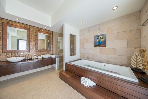 ビーチに位置する、サムイ島のこのヴィラは、サムイカート およびボプット ビーチから 2 km 圏内です。漁村まで 2.8 km です。 このヴィラでは、屋外プールでリラックスしたり、カヤックを楽しめる白砂のプライベートビーチに出かけたりしてお過ごしください。 ヴィラには、ベッドルーム 4 室、WiFi (無料)、プライベート ヤードが備わっています。キッチンには冷蔵庫とオーブンが備わっており、優雅な滞在をお約束するプライベートプール、深めの浴槽もご利用いただけます。