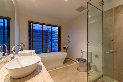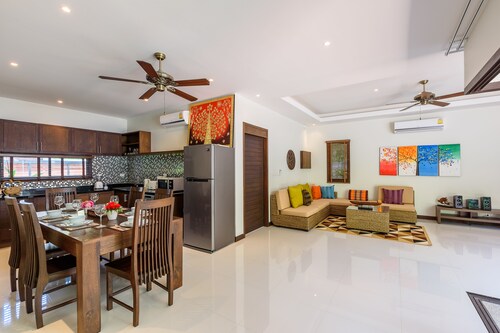 遊歩道沿いに位置するこのヴィラは、カロン ビューポイント、ナイハーン ビーチ、ラワイ シーフード マーケットから 5 km 圏内です。アオ サネ ビーチおよびヤヌイ ビーチも 10 km 圏内です。 24 時間対応のルームサービス、庭園、およびバーベキューグリルがあるヴィラです。セルフパーキング は無料です。 ヴィラには、ベッドルーム 2 室、WiFi (無料)、24 時間対応のルームサービスが備わっています。キッチンには冷蔵庫とオーブンが備わっており、優雅な滞在をお約束するプライベート プランジプール、深めの浴槽もご利用いただけます。週に 1 回客室清掃が行われます。