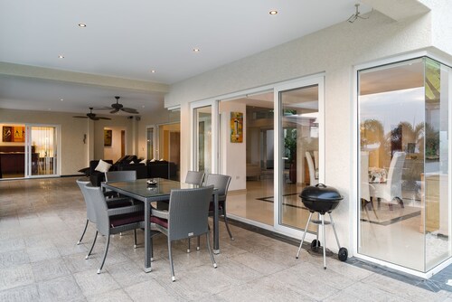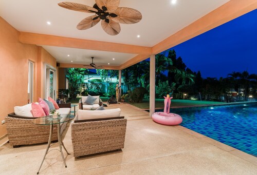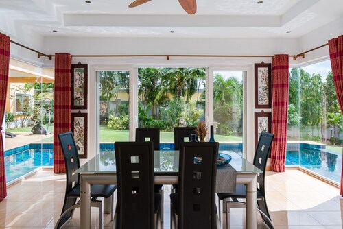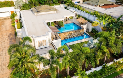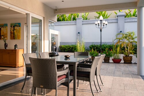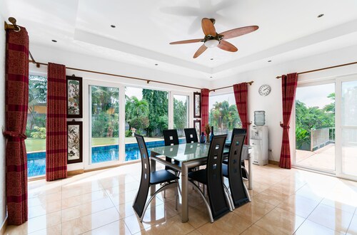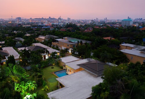 ノン プルーに位置するこのスパ付きヴィラは、アウトレット モール パッタヤー、テパーシット マーケット、ビッグ C サウス パタヤから 3 km 圏内です。湯の森温泉パタヤ店およびパタヤカートスピードウェイも 5 km 圏内です。パタヤタイ駅まで徒歩わずか 21 分です。 マリーナのほか、このヴィラにはフルサービス スパおよびレストランがあります。共用エリアでの WiFi (無料)および セルフパーキング (無料)もご利用いただけます。その他の設備には、ランドリー設備、24 時間対応フロントデスク、およびツアー / チケット案内があります。 全 10 室のヴィラには、プライベートプールとジェットバスのほか、キッチンおよびテレビ(デジタル放送付き) が備わっています。 洗濯機、WiFi (無料)、および家具付きパティオをご利用いただけます。客室清掃が行われる日が限定されています。