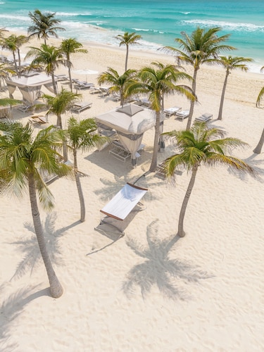 ホテルへ一歩足を踏み入れるとアロマの香りに包まれ、別世界へ入り込んだような感覚を味わえます。“純白”で統一された館内は清潔感があり、優雅さに満ちた空気が漂っていてまさに楽園を彷彿させます。ホテルスタッフが皆とても感じが良くいつも親切な対応をしてくれるため、日常を忘れ最高のバケーションを過ごせること間違いなし。さらに、各階にはバトラーと呼ばれる男性スタッフが7時~23時の間常駐しているので、レストランやスパの予約の代行などを行ってくれるほか、滞在中に困ったことがあればすぐに対応してくれて安心です。ラグジュアリーさを重視しているため、宿泊できるのは18歳以上の方となります。夜になると雰囲気が一気にロマンチックになり、ゆっくりと流れる時間の中で食事を楽しめます。ビーチリゾートですので厳しいドレスコードのあるレストランはないですが、せっかくのバカンスなのでぜひドレスアップをしてレストランに行ってみましょう!レストランやバーは計8ヶ所。フレンチやイタリアンは特に定評があるのでお勧めです。フレンチレストランのみ予約が必要ですのでお早めに。オールインクルーシブホテルですので、食事にも悩まず、バーではカリブならではのカク