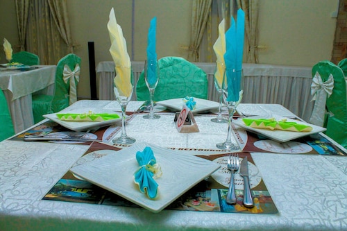 ブジュンブラの中心部に位置するこのホテルは、アメリカ大使館から 0.3 km、ブジュンブラ セントラル マーケットから 4.5 km です。プリンス ルイ ルワガソレ スタジアムおよびミュゼ ヴィヴァンも 10 km 圏内です。 このホテルには、屋外プール、レストラン、およびバー / ラウンジがあります。共用エリアでの WiFi (無料)および セルフパーキング (無料)もご利用いただけます。その他の設備には、スナックバー / デリ、ルーフトップテラス、および24 時間対応のルームサービスがあります。