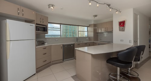 ビーチに直接アクセスできる、サーファーズ パラダイスのこのアパートスタイルホテルは、市内中心部にあり、サーファーズ パラダイス ビーチおよびカビル アベニューから徒歩 15 分圏内です。ゴールド コースト コンベンション & エキシビジョン センターおよびザ スター ゴールド コーストも 5 km 圏内です。サイプレス・アベニュー駅まで徒歩わずか 6 分です。 ビーチにあるこのアパートスタイルホテルでは、ホットタブやフィットネスセンターなどの便利な設備やサービスをご利用いただけます。 各客室では、冷蔵庫とオーブン、コンロ、電子レンジが備わったキッチンをご利用いただけます。エンターテインメント設備として、ケーブル放送付きのテレビがあるほか、便利な洗濯機 / 乾燥機、応接スペースもご利用いただけます。週に 1 回客室清掃が行われます。