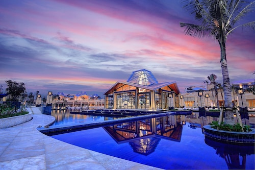 ムリアリゾートは3つのホテルが広大な敷地の中に形成されている大型リゾートです。普通のホテル形式の「ムリア・リゾート」、オーシャンフロントの「ザ・ムリア」、ホテル内はヴィラだけの「ムリア・ヴィラス」があります。明るく近代的なリゾートとして人気で、公共スペースともに全室にTOTOのウォシュレットが設置されているのもバリには珍しく高ポイント。近代的な分バリらしさは薄い印象を受けますがゴージャスです。中でも今回お勧めしたいのは「ムリア・ヴィラス」(ビーチフロント希望の方は「ザ・ムリア」を)。ヴィラスは小高い丘の方にあるのでビーチからは少々遠いのですが、専用プールやラウンジもあって静かで快適。プールサイドでもプライバシーを保ちながら快適に過ごす事が出来ます。客室にも緑のガーデンと専用プールとがありリラックスできます。広々としたシンプルな部屋はバリらしさよりも快適さとラグジュアリー感を打ち出しており、バスタブにはJacuzzi社のジャクジーを採用。極上のバスタイムを演出してくれます。日中は、ヴィラのフロントに日本人スタッフが常駐して気配りしてくれるので、バリが初めての方も英語が苦手な方も不安に感じることはないでしょう