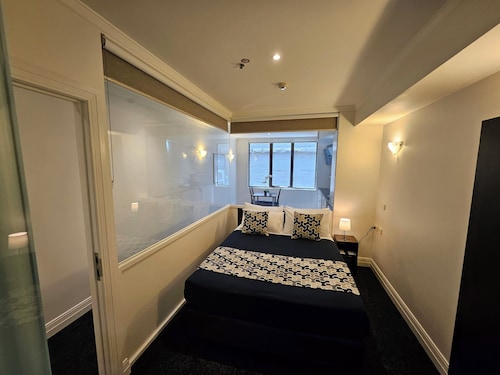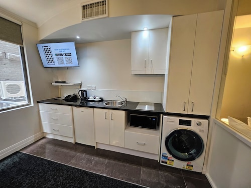メルボルン空港と中心部を結ぶ「スカイバス」の発着拠点となるサザンクロス駅からすぐのところに建つ、シンプルなバジェット・ホテルです。ロケーション的にも便利な場所にありながら、宿泊料金はかなりお手頃。サザンクロス駅からは、正面を出た大通り(スペンサー・ストリート)を渡って400メートルほどと、荷物が少なければ、歩いてすぐの距離にありますので、夜遅くスカイバスで空港から市内へ到着した時や、移動前の前泊などにも便利です。客室はいたってシンプル。ですが、清潔で快適に滞在できる最低限のものは揃っていますし、ゲスト用のランドリーも完備していますので、長期滞在にも利用できそうです。また、家族向けのファミリー・ルームもありますので、低予算で旅行したい子供連れのご家族にもぴったり。ただ注意したいのは、宿泊料が安い分、タオル交換や清掃などのサービスは入りません。清掃が必要な場合は別途料金がかかることや、新しいタオルが必要な場合は、レセプションでもらうなどしなければならないことを念頭に置く必要があります。また、荷物預かりにも数ドルの料金がかかります。安く宿泊できるのだから、そのくらいは仕方ないと割り切って宿泊できる人におすすめの