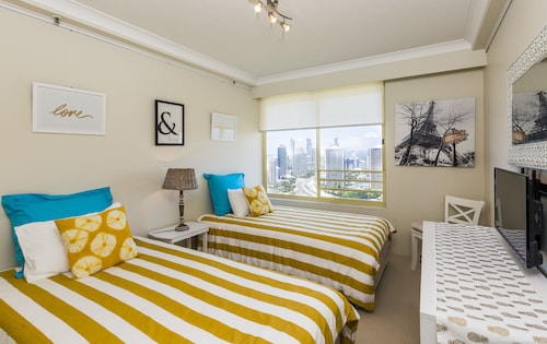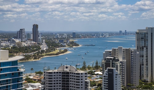 メイン ビーチに位置するこの高級アパートメントは、テダー アベニューおよびサーファーズ パラダイス ビーチから徒歩 15 分圏内です。カビル アベニューまで 2.7 km です。 サイプレス・アベニュー駅まで徒歩わずか 26 分です。 ビーチにあるこのアパートメントでは、ホットタブや24 時間営業のフィットネス施設などの便利な設備やサービスをご利用いただけます。 アパートメントには、ベッドルーム 4 室、WiFi (無料)、ピロートップ ベッドが備わっています。キッチンには、冷蔵庫、オーブン、コンロ、電子レンジが備わっています。客室清掃は行われません。