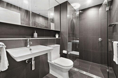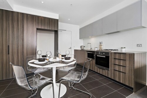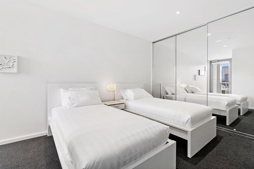 ドックランズに位置するこのアパートメントは、コリンズ ストリートおよびマーベル スタジアムから徒歩 10 分圏内です。メルボルン コンベンション アンド エキシビジョン センターおよびクラウンカジノも 2 km 圏内です。サザン クロス駅まで徒歩 13 分、フラッグスタッフ駅まで徒歩 25 分です。 この禁煙のアパートメントには、屋内プール、フィットネスセンター、およびホットタブがあります。共用エリアでの WiFi (無料)および セルフパーキング (無料)もご利用いただけます。その他の設備にはランドリー設備があります。 アパートメントには、ベッドルーム 2 室、WiFi (無料)、有線インターネット アクセス (無料) が備わっています。キッチンには、冷蔵庫、オーブン、コンロ、電子レンジが備わっています。客室清掃はリクエストにより行われます。