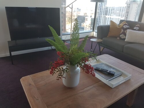 サウスバンクに位置するこのアパートメントは、セント キルダ ロード、メルボルン コンベンション アンド エキシビジョン センター、クラウンカジノから 2 km 圏内です。ロッド レイバー アリーナおよびコリンズ ストリートも 2 km 圏内です。フリンダース ストリート駅まで徒歩わずか 19 分です。 このアパートメントには、屋外プール、フィットネスセンター、およびスパサービスがあります。その他に、敷地内にはランドリー設備、コンビニエンスストア、および庭園があります。 アパートメントには、ベッドルーム 2 室、WiFi (無料)、ピロートップ ベッドが備わっています。深めの浴槽をご利用いただけるほか、冷蔵庫とオーブン付きのキッチンも備わっています。週に 1 回客室清掃が行われます。