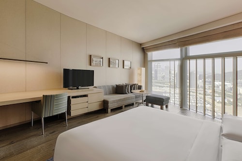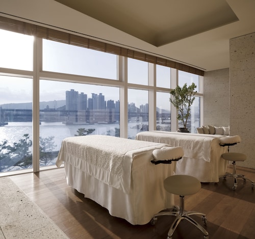 釜山を代表するホテルのひとつであり、世界でも有名なパークハイアット。まず外観から分かる美しい佇まいは、もはやアート!外観のみならず、内装のどこを切り取っても、ホテルというより美術品そのもののようで、全て完璧に計算されたデザイン空間。こちらの33階建てのタワーホテルはニューヨークの建築家ダニエル・リベスキンド氏が設計したものだそう。「パークハイアット東京」同様、非常にラグジュアリーな雰囲気です。また、このホテルを芸術的に見せているのは建築技術だけではなく、釜山有数の観光スポットである広安大橋や釜山マリーナを一望できる環境にもあり、これらがさらにリゾート空間のエッセンスになっています。特筆すべきは、まるで宝石をちりばめたような夜景。これを目にすれば、どんな人でも釜山滞在での素晴らしい思い出の1つになるに違いありません。一見の価値ありです!お部屋は大きく分けて、スタンダード、ビュー、デラックス、スイートの4種類。標準的なゲストルームの広さは42~47m²で、一般的なホテルの広さより広く、ゆとりがある設計。また客室の数は、69室のスイートを含む全269室となっています。アメニティに関しては、バスローブ、ヘアドライ