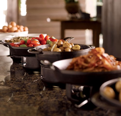 オープンキッチンで特製のステーキや寿司を提供する「ダイニングルーム」、