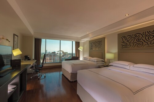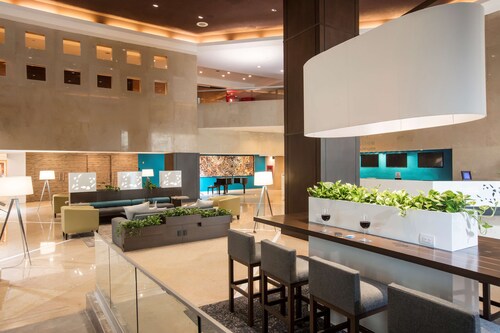 【全館禁煙】 ヒルトングアダラハラはワールドトレードセンターのビジネスエリアに位置しています。エキスポグアダラハラエキシビジョンセンターの近くに位置し、9つの会議室は2500名まで収容できます。40名までの小規模の会議もございます。控え室やプロジェクター付きのお部屋のある350名まで収容可能な設備の整った講堂で会議を行ってはいかがでしょうか。ホテル内はWiFiもご利用いただけます。Presidential Suiteにアップグレードいただくと、パーソナルジムや10席のプライベート会議室をご利用頂けます。最新のマシンが整いモダンなフィットネスセンターをぜひご活用ください。ホテルの屋外温水プールで泳いだり、スパやサウナでおくつろぎください。