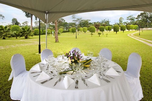 マラボに位置するこのホテルは、マラボ シティ ホール (行政官庁)、赤道ギニア国立大学 (UNGE)、国際スタジアムから 10 km 圏内です。マラボ大聖堂まで 6.8 km です。 レストラン、屋外プール、および2 か所のバー / ラウンジがある禁煙のホテルです。共用エリアでの WiFi (無料)、バレーパーキング (無料)、および空港シャトルサービス (無料)もご利用いただけます。その他に、敷地内にはフィットネスクラブ (スタッフ常駐)、プールサイドバー、および面の屋外テニスコートがあります。 全 187 室の客室には無料 WiFi および有線インターネットアクセス (無料) のほか、24 時間対応のルームサービスならびに液晶テレビ (DVD プレーヤー付き) が備わっています。ミニバー、個別の浴槽とシャワー、およびコーヒー メーカーをご利用いただけます。
