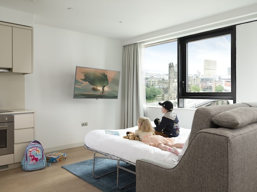 グリーンゲートに位置するこの高級アパートスタイルホテルは、マンチェスター大聖堂、ディーンズゲート、アオ アリーナから徒歩 5 分圏内です。マンチェスター アーンデールおよびエクスチェンジ スクエアも 10 分圏内です。マンチェスター ヴィクトリア駅まで徒歩わずか 5 分、エクスチェンジ・スクエア・トラム停留所まで徒歩 5 分です。 屋内プール、レストラン、および24 時間営業のフィットネスクラブ (スタッフ常駐)がある禁煙のアパートスタイルホテルです。共用エリアでの WiFiは無料です。 その他の設備には、バー / ラウンジ、コーヒーショップ / カフェ、およびセルフパーキング (有料)があります。 各客室では、冷蔵庫とオーブン、コンロ、電子レンジが備わったキッチンをご利用いただけます。エンターテインメント設備として、衛星放送付きの薄型テレビがあるほか、便利な洗濯機 / 乾燥機、応接スペースもご利用いただけます。週に 1 回客室清掃が行われます。