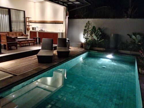 ビーチの近くにあるこのヴィラは、ガルーダ ウィスヌ クンチャナ カルチュラルパークから 2.2 km、ジンバラン ビーチから 2.5 km です。ウダヤナ大学およびアヤナ スパも 3 km 圏内です。 このヴィラには屋内プール、コンシェルジュ サービス、およびドライクリーニングがあります。共用エリアでの WiFi (無料)および セルフパーキング (無料)もご利用いただけます。その他に、敷地内にはランドリー設備、24 時間対応フロントデスク、およびエクスプレス チェックインがあります。 このヴィラの防音仕様の客室には、WiFi (無料)、有線インターネットアクセス (無料)、および室内でのマッサージが備わっています。簡易キッチンにはコンロが備わっており、優雅な滞在を約束するプライベート プランジプールおよび屋内の専用ホットタブもご利用いただけます。