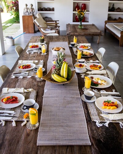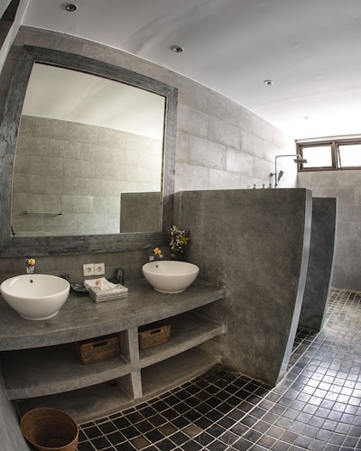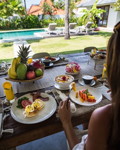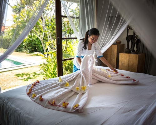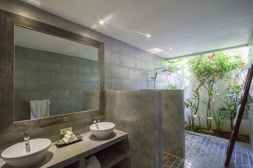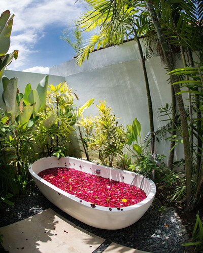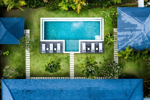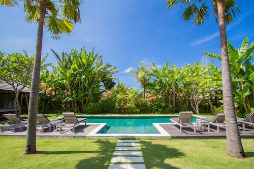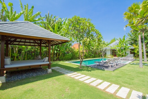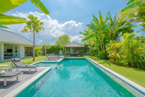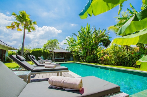 ベラワに位置するこのヴィラは、チャング・スクエアから 1.2 km、スミニャック ビーチから 2.3 km です。アトラス・ビーチ・フェストおよびベラワ ビーチも 2 km 圏内です。 屋外プール、レストラン、およびドライクリーニングがある禁煙のヴィラです。共用エリアでの WiFi (無料)および セルフパーキング (無料)もご利用いただけます。その他に、敷地内にはランドリー設備、庭園、およびセーフティボックス (フロントデスク)があります。 ヴィラには、ベッドルーム 3 室、WiFi (無料)、バルコニーが備わっています。プライベートプールをご利用いただけるほか、冷蔵庫とコンロ付きの簡易キッチンも備わっています。