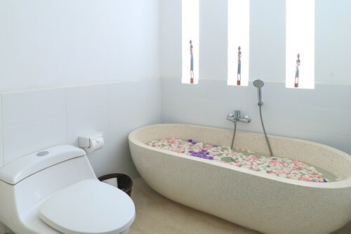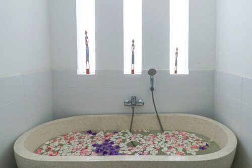 バトゥ ボロンに位置するこのバケーションホームは、チャングビーチから 0.6 km、スミニャック ビーチから 4.2 km です。バトゥ ボロン ビーチおよびネラヤンビーチも 15 分圏内です。 屋外プールのほか、このバケーションホームには24 時間対応フロントデスクおよび庭園があります。 共用エリアでの WiFi (無料)および セルフパーキング (無料)もご利用いただけます。その他の設備にはバーベキューグリルがあります。 全 3 室のバケーションホームには 2 つの寝室およびWiFi (無料)が備わっています。キッチン (冷蔵庫、コンロ、および電子レンジ付き) をご利用いただけます。