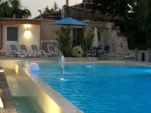 ポッツァッロにあるこのゴルフアパートメントは、サンタ マリア ディ フォカッロ ビーチから 1.6 km、ピエトレ ネレ ビーチおよびカブレラ タワーから 5 km 圏内です。Raganzinoおよびポッツァッロ ポートも 10 km 圏内です。 この禁煙のアパートメントには、屋外プール、面の屋外テニスコート、およびランドリー設備があります。共用エリアでの WiFi (無料)および セルフパーキング (無料)もご利用いただけます。その他の設備には、庭園およびバーベキューグリルがあります。 アパートメントでは、WiFi (無料)、洗濯機 / 乾燥機に加えて、冷蔵庫と電子レンジが備わったキッチンをご利用いただけます。そのほか、2 室のバスルーム、ケーブルテレビ、シーリングファンなどの設備とサービスもご利用いただけます。