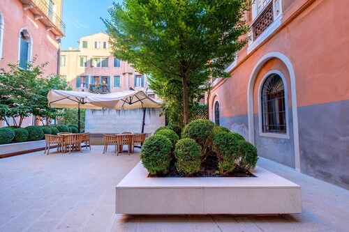 ベネチア中心に位置するこのアパートメントは、テアトロ・ラ・フェニーチェ、サン マルコ広場、サン マルコ寺院から徒歩 5 分圏内です。ドゥカーレ宮殿およびリアルト橋も 10 分圏内です。ベニス サンタルチア駅まで徒歩 24 分、ヴェネツィア (XVQ - サンタ ルチーア駅)まで徒歩 24 分です。 この禁煙のアパートメントには、コンシェルジュ サービス、庭園、および多言語サービスがあります。 アパートメントには、ベッドルーム 3 室、WiFi (無料)、有線インターネット アクセス (無料) が備わっています。キッチンには、冷蔵庫、コンロ、電子レンジ、食器洗い機が備わっています。客室清掃はリクエストにより行われます。