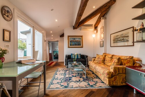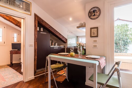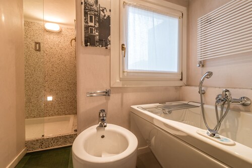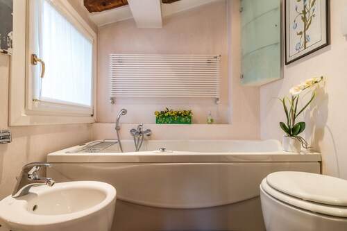 サン ポーロに位置するこのアパートメントは、バジリカ・ディ・サンタ・マリア・グロリオサ・デイ・フラーリ、ローマ広場、カナル グランデから徒歩 10 分圏内です。サン マルコ広場およびリアルト橋も 2 km 圏内です。ベニス サンタルチア駅まで徒歩 10 分、ヴェネツィア (XVQ - サンタ ルチーア駅)まで徒歩 10 分です。 アパートメントでは、2 室のバスルーム、ダイニング スペースに加えて、WiFi (無料)、衛星放送付きテレビをご利用いただけます。便利な応接スペース、冷蔵庫のほか、家具付きバルコニー、コンロもご利用いただけます。客室清掃は行われません。