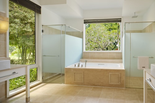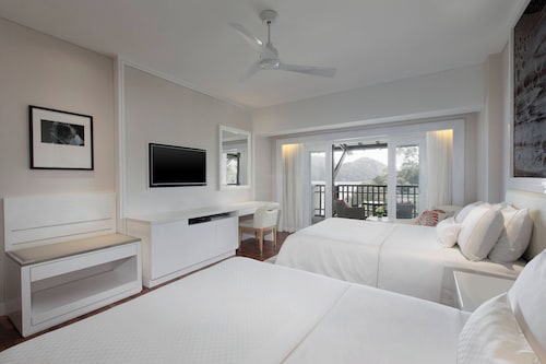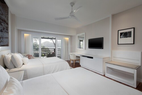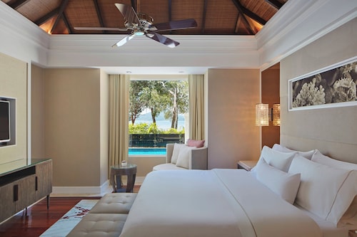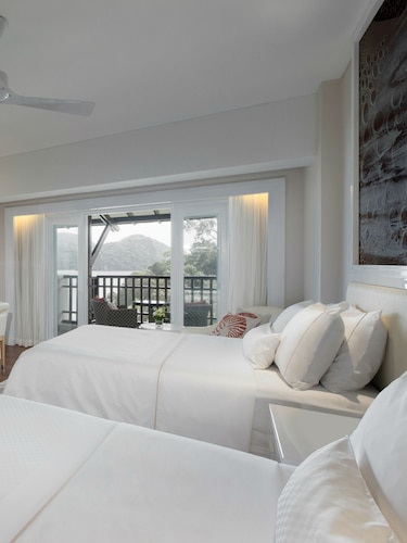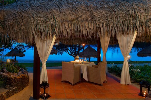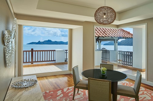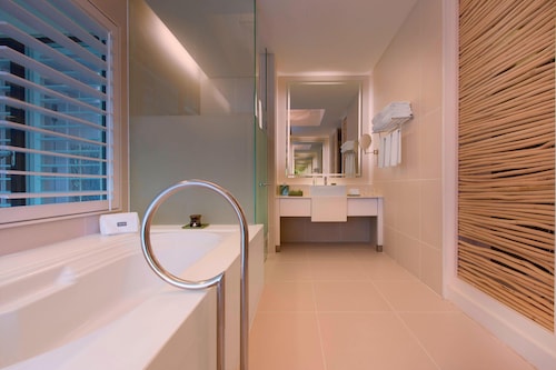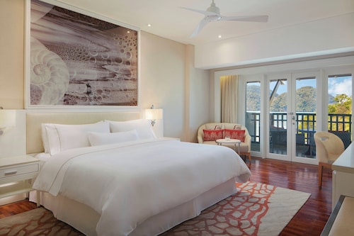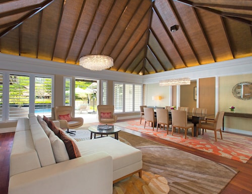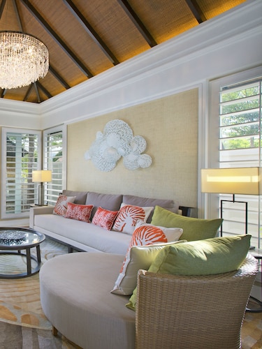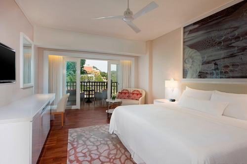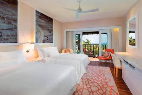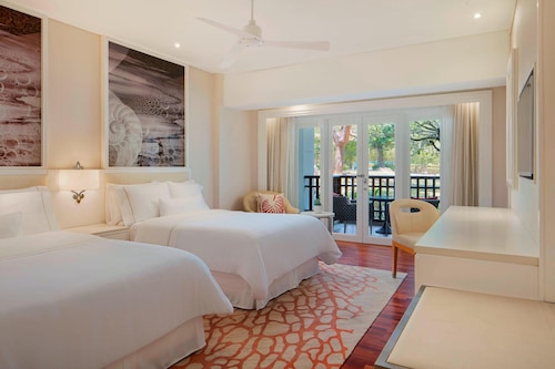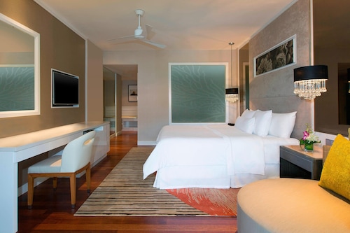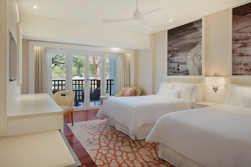 毎日島の内外からの出入りで賑わうクアジェティからわずか車で1分なのに、ホテルのプライベートエリアに入ったとたん、5つ星ホテル独特の静寂の空間が現れる。ビーチに面してコの字型にたち、敷地の中央に大人用、子供用の大小4つのプールがあり、それを取り囲むように4階建ての段差型メインタワーがある。そして広い敷地の奥にはビラ棟が並んでいる。客室は、ウェスティンらしくシックでモダンな造りで居住性に優れている。全室ウェスティンが誇るヘブンリーベッドを採用。旅先での安らぎの眠りを約束する。また客室からの眺望を選ぶことができ、海が見えるお部屋の数が多いので、眺望にこだわる方にもおすすめ。リゾートの朝を決める朝食が、ウェスティンはすごい!ロビー下の「テイスト」では、明るいガラス張りの窓から目の前の海や島影を楽しみながら、気分よく一日のエネルギーをチャージできる。シェフたちが目の前で調理するオープンキッチンスタイルで、朝からテンションが上がるメニューが並ぶ。各種果物をその場で絞るフレッシュジュースにも目移りするが、なんとシャンパンも並んでいるので、「朝っぱらからほろ酔い気分」のリゾートならではの過ごし方もあってよい。