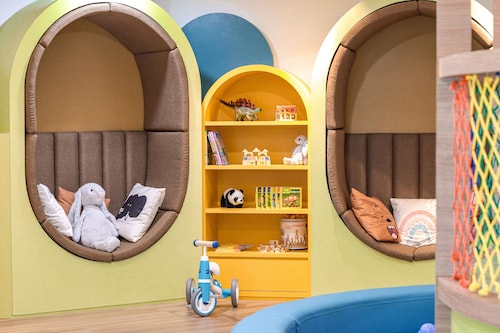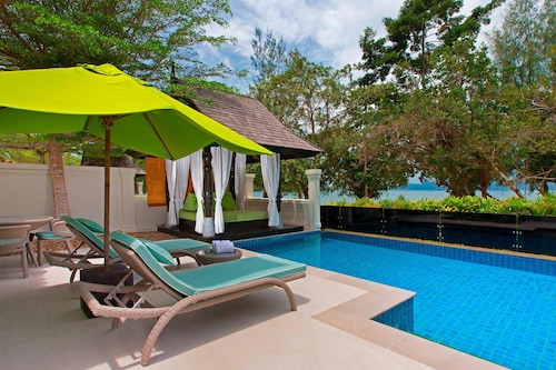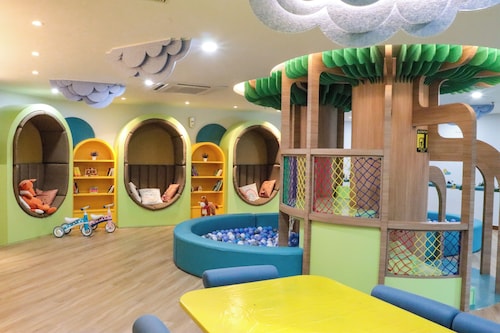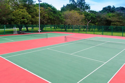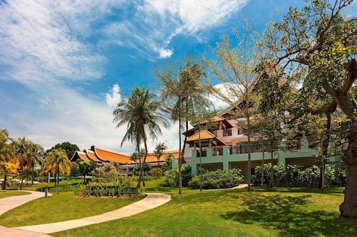 ビーチに面してコの字型にたち、敷地の中央に大人用、子供用の大小4つのプールがあり、