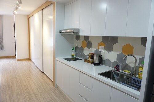 フーニュアンに位置するこのアパートメントは、パワーボウル、ホーチミン市オペラハウス、ベンタイン市場から 10 km 圏内です。ユニオンスクエアおよびサイゴン スクエアも 10 km 圏内です。ゴーヴァップ駅まで徒歩わずか 23 分です。 この禁煙のアパートメントには、屋外プール、フィットネスセンター、および子供用プールがあります。共用エリアでの WiFiは無料です。 その他に、敷地内にはランドリー設備、エクスプレス チェックイン、およびエクスプレス チェックアウトがあります。 アパートメントでは、無料 WiFi、無料の有線インターネット アクセス、ケーブル放送付き液晶テレビ、さらに冷蔵庫とコンロが備わった簡易キッチンをご利用いただけます。便利な洗濯機、コーヒー / ティー メーカーのほか、ミニバー、高級寝具もご利用いただけます。客室清掃は行われません。