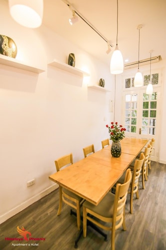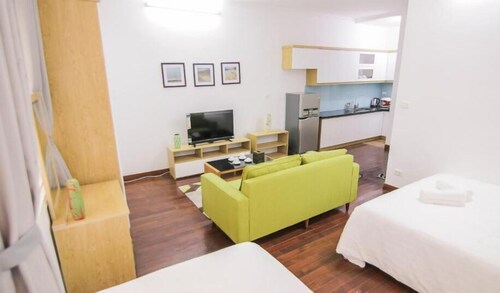 タイホーに位置するこのアパートスタイルホテルは、ウェスト湖および西湖ウォーターパークから徒歩 15 分圏内です。チン コン ソン ウォーキング ストリートおよびロッテモールタイホも 2 km 圏内です。 レストランのほか、このアパートスタイルホテルにはバー / ラウンジおよびスナックバー / デリがあります。共用エリアでの WiFiは無料です。 その他の設備には、セルフパーキング (有料)、コンシェルジュ サービス、およびランドリー設備があります。 各客室では、冷蔵庫とコンロが備わった簡易キッチンに加えて、WiFi (無料)、ケーブル放送付き液晶テレビもご利用いただけます。その他の設備とサービスには、炊飯器、ヘアドライヤー、シャワーなどがあります。