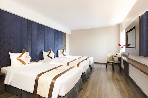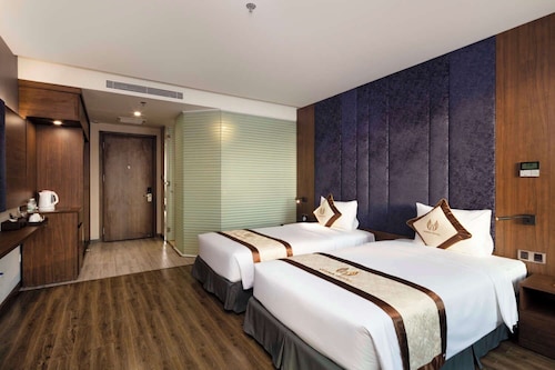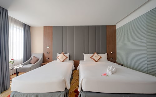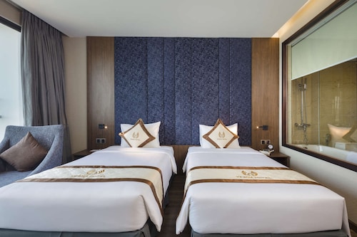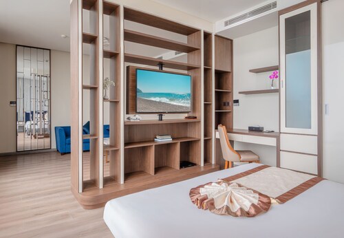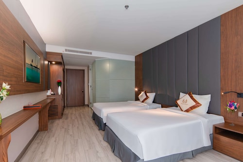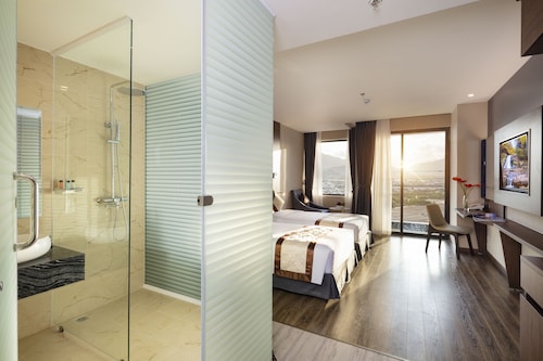 ニャチャンにあるファミリー向けのこのホテルは、海沿いに位置し、ルイジアナ ブルーハウスおよびニャチャン ナイト マーケットから 2 km 圏内です。エイプリル 2 スクエアおよびトラム フォーン タワーも 2 km 圏内です。 この禁煙のホテルには、フルサービス スパ、屋内プール、およびレストランがあります。共用エリアでの WiFi (無料)、バレーパーキング (無料)、およびビーチシャトルサービス (無料)もご利用いただけます。 その他に、敷地内にはフィットネスセンター、バー / ラウンジ、およびプールサイドバーがあります。