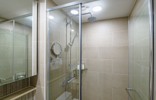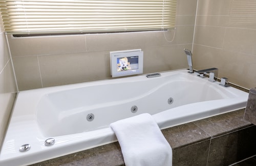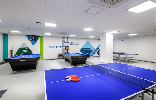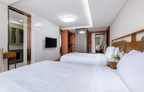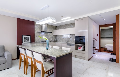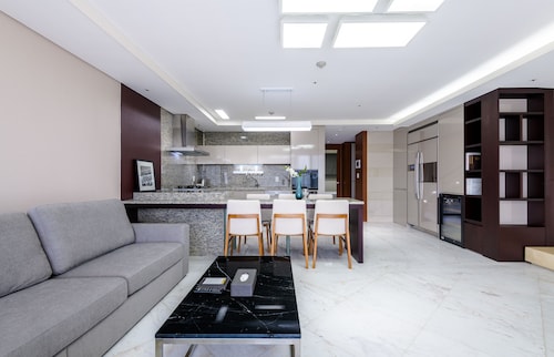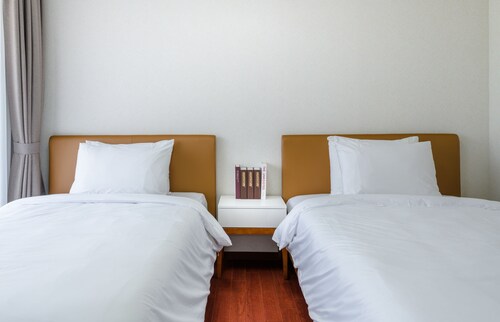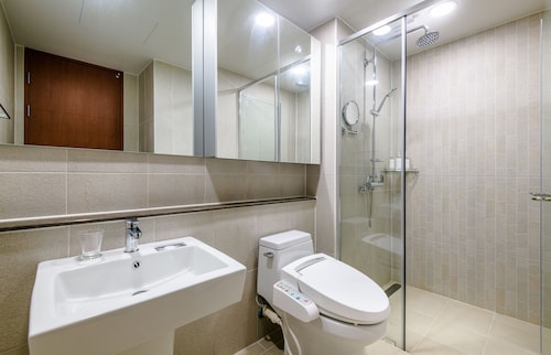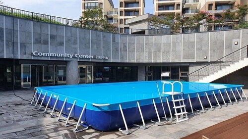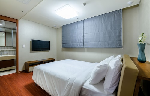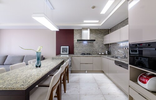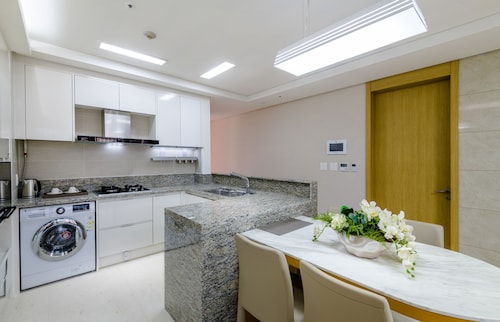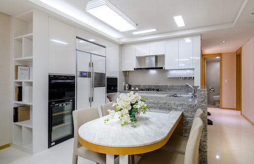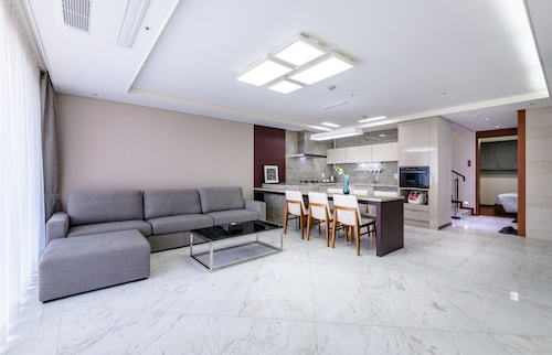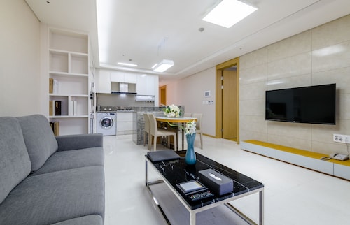 中文に位置するこのコンドミニアムは、済州島テディ ベア ミュージアムおよび国際コンベンション センターから 2 km 圏内です。ハロー キティ アイランドおよび済州ウォーターワールドも 15 km 圏内です。 この禁煙のコンドミニアムには、フィットネスセンター、季節限定屋外プール、および24 時間対応フロントデスクがあります。共用エリアでの WiFi (無料)および セルフパーキング (無料)もご利用いただけます。その他の設備には庭園があります。 各コンドミニアムには、ベッドルーム 3 室、WiFi (無料)、パティオが備わっています。ジェットバスをご利用いただけるほか、冷蔵庫と電子レンジ付きのキッチンも備わっています。客室清掃はリクエストにより行われます。