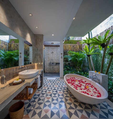 チャングーに位置する、ファミリー向けのこのヴィラは、ウォーターフロントにあり、ペレレナン ビーチおよびエコー ビーチから 2 km 圏内です。スミニャック ビーチおよびタナロット寺院も 15 km 圏内です。 屋外プール、ルーフトップテラス、およびコンシェルジュ サービスがある禁煙のヴィラです。コンチネンタル ブレックファスト (無料)、共用エリアでの WiFi (無料)、およびセルフパーキング (無料)もご利用いただけます。その他に、敷地内にはドライクリーニング、ランドリー設備、およびエクスプレス チェックアウトがあります。 ヴィラでは、プライベートプールのほかに、WiFi (無料)、キッチンもご利用いただけます。衛星放送付き薄型テレビとNetflixでエンターテインメントをお楽しみいただけるほか、快適なピロートップ ベッドとエジプト綿のシーツもご利用いただけます。