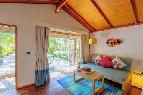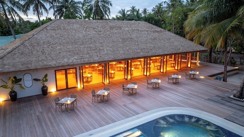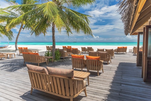 アクセスは、マーレ国際空港からはスピードボートで約55分。北マーレ環礁に位置しています。クレジットカードはVisa、Mastercard、American Express、Maestro、UnionPayが使用可能。現金は米ドル、英ポンド、ユーロ、スイスフラン、シンガポールドルが使用可能。2019年3月時点で、日本語対応は不可。