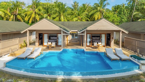 そんな大きな島の中には、全5カテゴリーからなる284部屋があります。ビーチヴィラは4カテゴリー、水上ヴィラは1カテゴリー。部屋数が多くて、プライベート感がなさそうですが、ビーチヴィラの中でも「ジャグジービーチヴィラ」はばっちりとプライベートな空間を備えています。