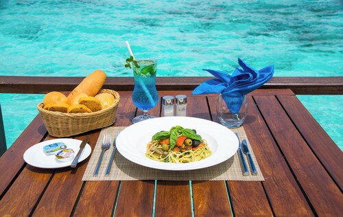 ラグジュアリー感よりも素朴な雰囲気が好き、でもビーチフロントのお部屋や美味しいお食事を楽しみたいという方にはお勧めのリゾートホテルです。アクセスは、マーレ国際空港からスピードボートで約50分。2017年2月現在、日本人スタッフは不在です。各種クレジットカード使用可。