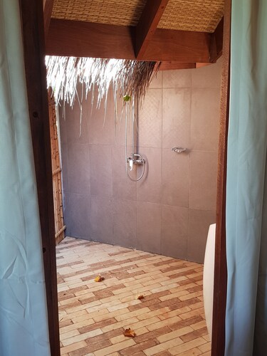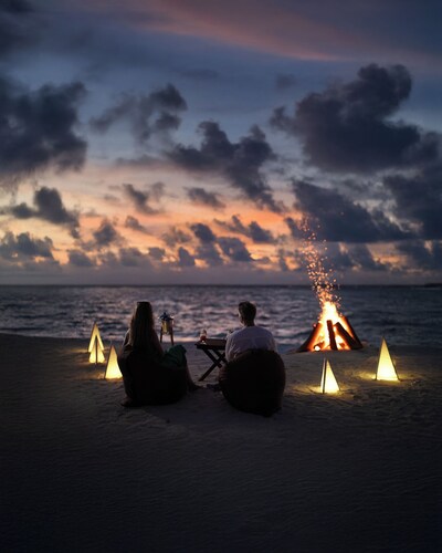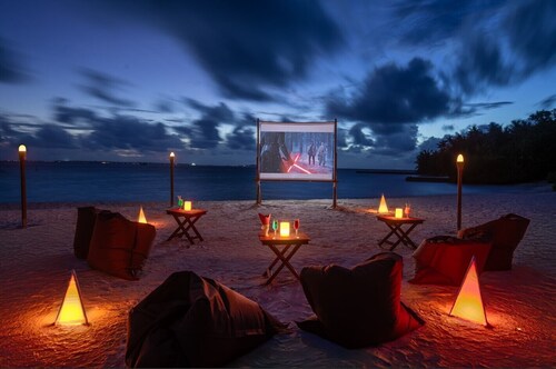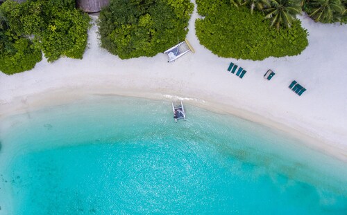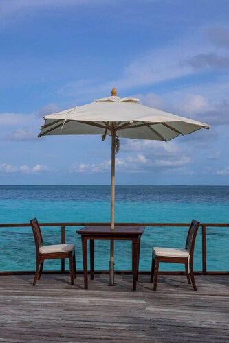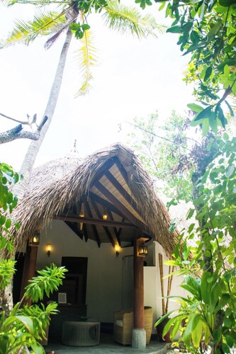 ジャングルのように覆い茂った木々の中に建てられた、36室ある客室は全てビーチフロントバンガロー。椰子の葉葺き屋根のモルディブらしいデザインの客室は40平米と大きなバンガローではありませんが、ベッドルームと合わせて日当たりの良いシッティングルームもありカップルにはちょうど良い広さ。シッティングルームにあるドアから外へ出ると、すぐ目の前にはプライベートビーチ。各客室に備え付けたれたサンベッドやビーチチェアにてビーチを楽しむことができます。