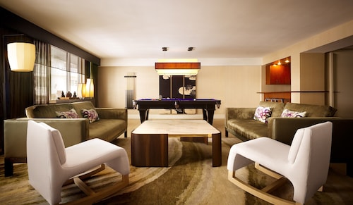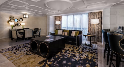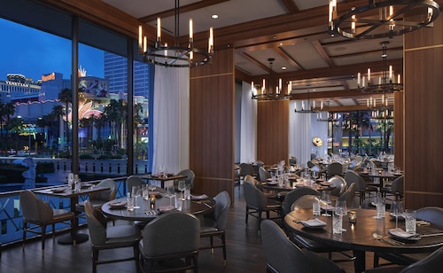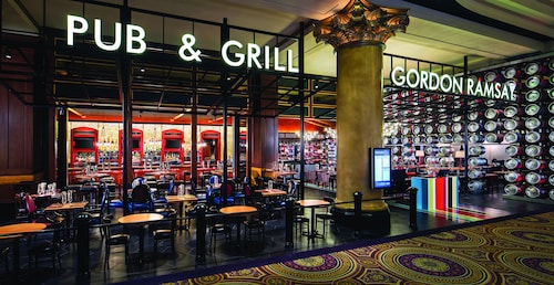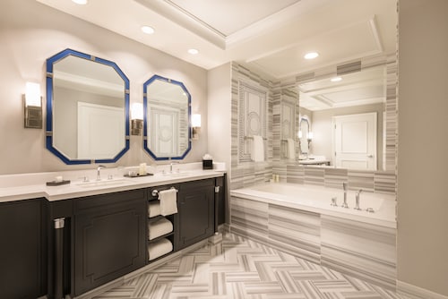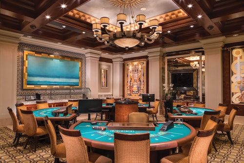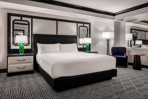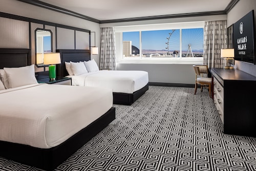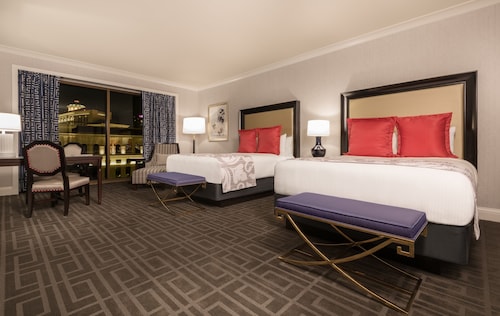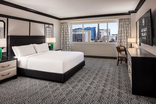 Augustus Tower(26階建て) 2005年オープンのこのタワーはフラミンゴ通り沿いに建てられているため、南側に向いた部屋からは道路をはさんでお隣ベラージオの噴水ショーを楽しめます。 標準的な部屋の広さは60㎡と6つのタワーの中で一番広く、落ち着いた色合いのインテリアで、バスルームは大き目のバスタブ(ジェットバス)とシャワーブースが分かれたタイプ。 他のタワーと違い専用の入り口とチェックインカウンターを使いますので、混雑もなくちょっと贅沢な気分が味わえます。
