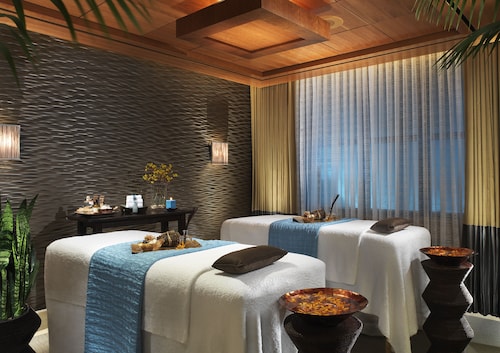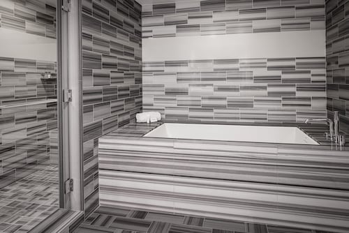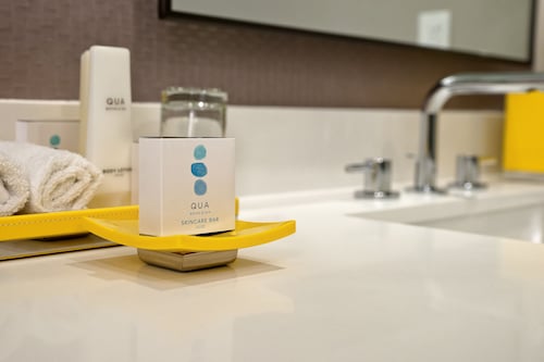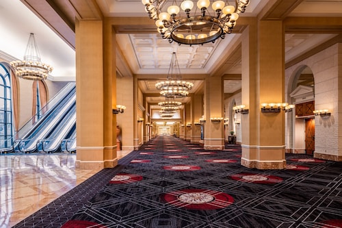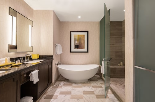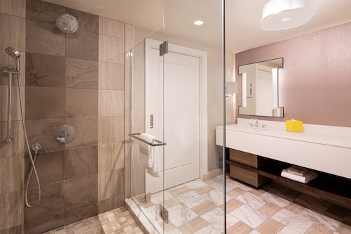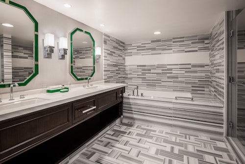 Roman Tower(14階建て): 予約をする時に一番安い料金が出てくるのがこのタワーの部屋でしょう。 1966年のホテルオープン当時のオリジナルビルディングなので、正面玄関から客室エレベーターまでは一番近いのですが、スタイリッシュなインテリアの他のタワーの部屋と比べるとやはり古さは否めません。バスルームはバスタブにシャワーがついたユニットバスタイプ。
