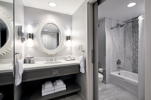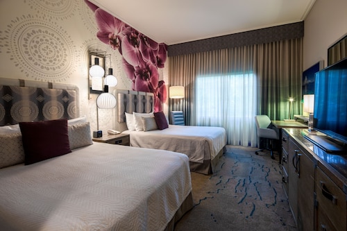 3月10日から4泊しました。Universal Studio Orlando とお隣のIslands Of Adventure を行き来できる4day ticketを購入し4日間がっつり楽しんできました。オンサイトホテルの特典として一般開園前の8時に入園し、ハリーポッターアトラクションを楽しめます。4日間で5回アトラクションに乗りました。最高でした!! サービスが悪いな、と思ったのはアメニティ関連です。シャンプー、コンディショナーは最初の日に設置してあったものが無くなるまで次の新しい物を置いてくれません。石鹸も同じくですので、最後の4日目の夜は石鹸が1?くらいになるまで使わねばなりませんでした(笑)もちろん言えば持ってきてもらえたのしょうが。。。 こちらに泊まる前にWDW直営ホテルに6泊してからこちらに移ったのでどうしても比較してしまうのですが、やはりWDWのホテルに比べると明るさ楽しさでは劣ります。恐らく小さい子がユニバーサルスタジオオーランドにはあまり行かないからかなとも思いますが。。。価格的にはWDW直営ホテルと差はなかったです。 ユニバーサルスタジオオーランドのオンサイトホテルは3軒で、こちらのホテルが一番安いので、もし次に行くとしてもこのホテルを利用すると思います。