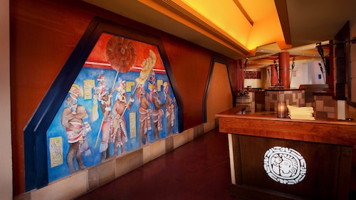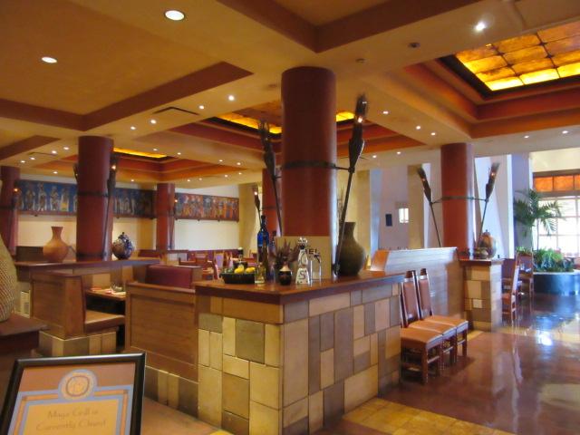 本館の「エル・セントロ」には、レセプション、ギフトショップ、フードコート、レストランなどがあります。テーブルサービス・レストラン「MAYA GRILL」では、メキシコ料理に加え、ステーキやシーフードなど幅広いメニューを味わうことができます!通常は夕食のみの営業ですが、繁忙期には朝食も営業することがあります。フードコートのメニューも種類豊富で、朝食にはオムレツ、パン、パンケーキなどに加え、ファヒータなどもあります。また、昼食、夕食ではエンチラーダ、タコスなどのメキシコ料理と、ハンバーガー、サラダ、リブなどのメニューを楽しむことができます。