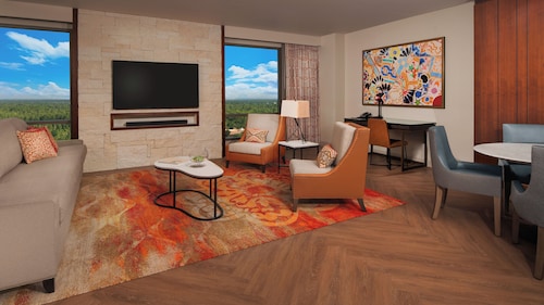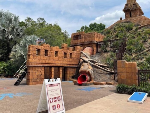 広大な敷地には、カラシス、ランチョズ、ガバナーズと名づけられた3つのエリアがあります。各パークへの無料シャトルバスはフロントを出た正面玄関からだけではなく、敷地内にバス停がいくつかあるので、お泊りのお部屋から一番近いバス停から乗り降りできます!