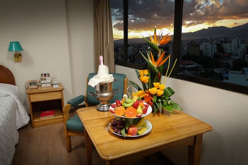 コチャバンバ中心部に位置するこのホテルは、Colon Squareおよびコロン広場から徒歩 5 分圏内です。サンタ テレサ修道院博物館およびバンデラス広場も徒歩 10 分歩圏内です。コチャバンバ メトロ駅まで徒歩 26 分、コチャバンバ駅まで徒歩 27 分です。 レストランのほか、このホテルにはフィットネスセンターおよびスパサービスがあります。朝食ビュッフェ (無料)、共用エリアでの WiFi (無料)、およびセルフパーキング (無料)もご利用いただけます。その他に、敷地内にはビジネスセンター、会議スペース、およびコンシェルジュ サービスがあります。