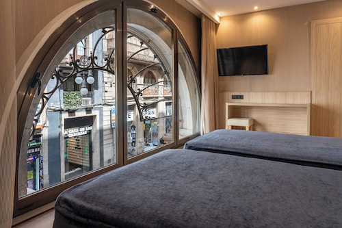 【Wi-Fi全館無料】 旧市街、ゴシック地区に位置するホテル。バルセロナの目抜き通りのひとつ、ランブラス通りに近く、最寄の地下鉄駅LICEU、JAUME Iへもそれぞれ徒歩約5分以内と便利なロケーション。徒歩圏内に博物館やランドマーク多く、観光に抜群の立地が人気。 客室はクラシックとモダンなスタイルを組み合わせ、シンプルな装飾が施されており、機能的にデザインされています。
