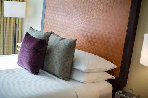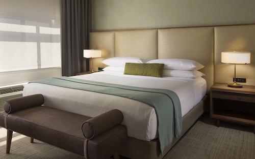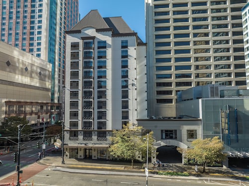 ダウンタウンの目抜き通りであるパイン・ストリート添いに建つ、ヨーロピアン・スタイルのホテル。お隣は『ティファニー』や『ケイトスペイド』、さらには映画館も入った高級モール『パシフィックプレイス』。さらにそのお隣はライトレールやモノレールの駅も入ったダウンタウンの拠点『ウエストレイクセンター』と、これ以上ないくらいの便利なロケーションです。150室以下と中規模のホテルなので、大型ホテルチェーンでは味わえないアットホーム感と行き届いたサービスが受けられます。客室はお洒落でシックなインテリアで、この立地にしては広々として快適。アメニティーは、オーガニックのハチミツをベースにした高級ブランドのシリーズを使用。バスローブもすべての部屋に備えられています。が、スタンダード・ルームの場合、シャワーのみでバスタブがない部屋もあるので要注意。予約時にリクエストしましょう。1階には、日本人オーナーによる『ドラゴンフィッシュ・アジアン・カフェ』があり、アジアのフュージョン料理や、韓国、中国、そして日本の料理が楽しめます。中には伝統的というよりアメリカ人テイストのメニューもありますが、ルームサービスで日本料理がオーダーできるホテル