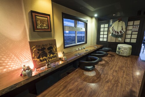 なんとも嬉しいのが宿泊特典として利用できる露天風呂!海を見ながらゆっくりと過ごせます。サウナもあるので、だらだら長居できます。