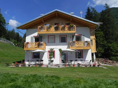 山中にあるこのファームステイは、ソーレ バレーおよびスキーラマ ドロミティ アダメリョ ブレンタから歩いてすぐです。ミュゼオ デラ シビルタ ソランドラおよびモリーニ ソーミルも 2 km 圏内です。 この禁煙のファームステイには、レストラン、バー / ラウンジ、および庭園があります。朝食ビュッフェ (無料)、共用エリアでの WiFi (無料)、およびセルフパーキング (無料)もご利用いただけます。その他の設備には、セーフティボックス (フロントデスク)および宴会場があります。