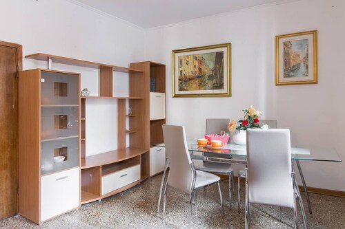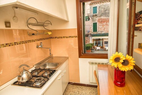 ベネチア中心に位置するこのアパートメントは、T フォンダコ デイ テデスキおよびリアルト橋から歩いてすぐです。サン マルコ広場およびサン マルコ寺院も 10 分圏内です。ベニス サンタルチア駅まで徒歩 21 分、ヴェネツィア (XVQ - サンタ ルチーア駅)まで徒歩 21 分です。 この禁煙のアパートメントには、多言語サービスがあります。 アパートメントでは、冷蔵庫とコンロが備わった簡易キッチンに加えて、WiFi (無料)、デジタル放送付き薄型テレビもご利用いただけます。そのほか、ダイニング スペース、応接スペース、レインフォールシャワーもご利用いただけます。客室清掃は行われません。