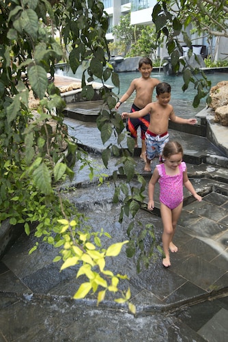 広大なリゾートの中で、お子様が思い切り楽しめる施設やキッズクラブ、プログラムが充実しています。世界各国のおともだちと遊びながら、バリの文化にも触れる様々な体験をしてみましょう!リゾート内には、スライダー付のプールを含め、5ヶ所のプールがあります。また、アヤナと同じ敷地内に誕生した“リンバ ジンバラン バリ”にも、スライダー付のプールを含む6か所のプールがあり、アヤナかリンバに宿泊すれば、どのプールも自由に利用することができます。また、プライベートビーチのクブビーチは、白く美しい砂浜が広がり親子での海遊びに絶好のロケーション!キッズクラブでは、トランポリンなど様々な遊具やテレビゲームで遊ぶことができます。日替わりのキッズプログラムでは年齢別(2-4歳と5歳以上)に、バリならではの体験ができます。陶器の絵付けや、バリ衣装のドレスアップなど、たくさんのプログラムがあります。客室は、全室ハンドシャワーと固定シャワー付のお部屋。赤ちゃんを連れて、宿泊する際にはベビーバスアメニティや、ベビーベッドを無料で用意してくれます。また、各レストランでは、キッズメニューを取り揃えています。ベビーシッターの利用もできます。リゾー