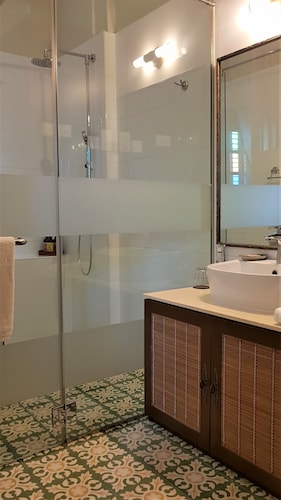 部屋数は全部で11室、それぞれ違ったデザインになっており、「ピーコック」「オピウム」「インドシナ」といった名前が付いています。どの客室もおしゃれで個性的、アメニティーグッズは全てオーガニック製、冷蔵庫には手作りレモンティーが用意されています。水回りも清潔で、一部の客室には猫足のバスタブがあります。ブティックホテルの中には、雰囲気は最高だが使い勝手がいまひとつ、というものも多いのですが、このホテルは雰囲気の良さだけではなく、機能性の部分でも満足できます。