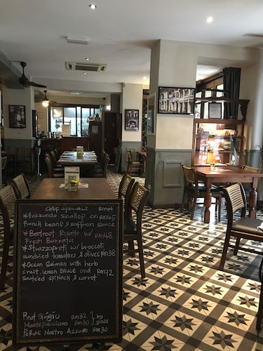 ジョージタウンの中心部を通るキャンベル通りに面した、こぢんまりとしたブティックホテルです。ホテルのオーナーはイタリア人のロベルトさんで、1階にあるイタリア料理レストラン「イルバカロ」のメインシェフは、ロベルトさんの兄マルコさんです。部屋数は全部で11室、それぞれ違ったデザインになっており、「ピーコック」「オピウム」「インドシナ」といった名前が付いています。どの客室もおしゃれで個性的、アメニティーグッズは全てオーガニック製、冷蔵庫には手作りレモンティーが用意されています。水回りも清潔で、一部の客室には猫足のバスタブがあります。ブティックホテルの中には、雰囲気は最高だが使い勝手がいまひとつ、というものも多いのですが、このホテルは雰囲気の良さだけではなく、機能性の部分でも満足できます。大型ホテルのようなプールやジムはありませんが、静かに本を読んだり、何も考えずにのんびり過ごしたりできる、ミニライブラリーやルーフテラスがあり、ある意味贅沢な時間を過ごすことができます。イタリア人シェフのマルコさんが作る本格イタリア料理が楽しめる「イルバカロ」も是非利用したいところです。ランチのパスタやビザ、ドルチェもおすすめです。